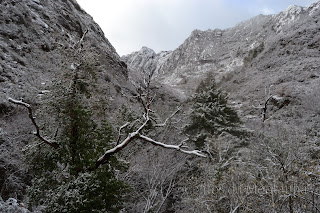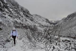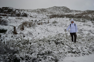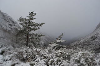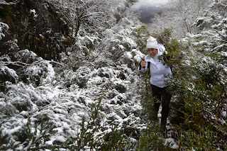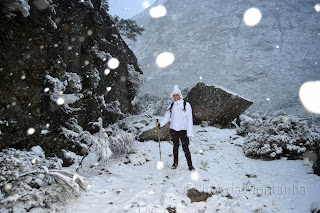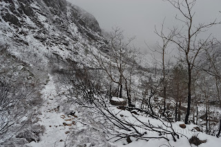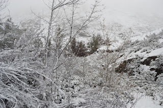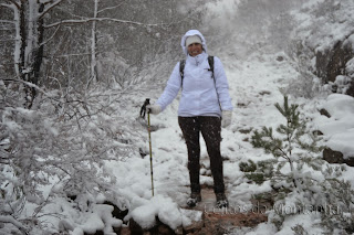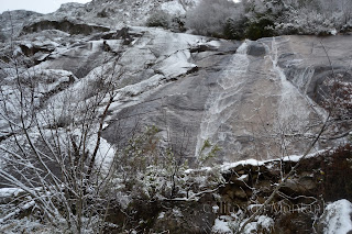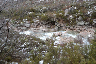 À chegada Portela fomos logo brindados com a primeira queda de Flocos de Neve onde as espetativas aumentaram sobre beleza do Trilho, pois já é um trilho muito nosso conhecido mas apenas o tinhamos feito com bom tempo. Logo á partida primeiras fotos com Neve e iniciamos descida até Ponte sobre Rio Homem onde depois viramos esquerda pelo trilho de Vale do Homem e lá deparamos com Encosta do Sol de um Lado e "Encosta da Sombra" como nós lhe chamamos, do outro e nosso trilho no meio. Iniciamos subida e lá mais uma queda de neve nos surpreendeu e conforme fomos subindo mais neve caía, passamos Fonte da Abilheira, Ribeira de Água de Pala e Ponte da Ribeira do Cagarouço, continuamos com quedas de neve a aumentar  significativamente o que tinha superado todas nossas expectativas, a beleza do branco era total. Chegados aos Carris aproveitamos para almoçar algo quente pois a temperatura andava a volta de -5 cº e a visão não devia ser superior a trinta metros. Deu para tirar umas fotos e voltar todos satisfeitos, pois é um trilho em que este dia  jamais será esquecido, tal a sua beleza e grandiosidade.