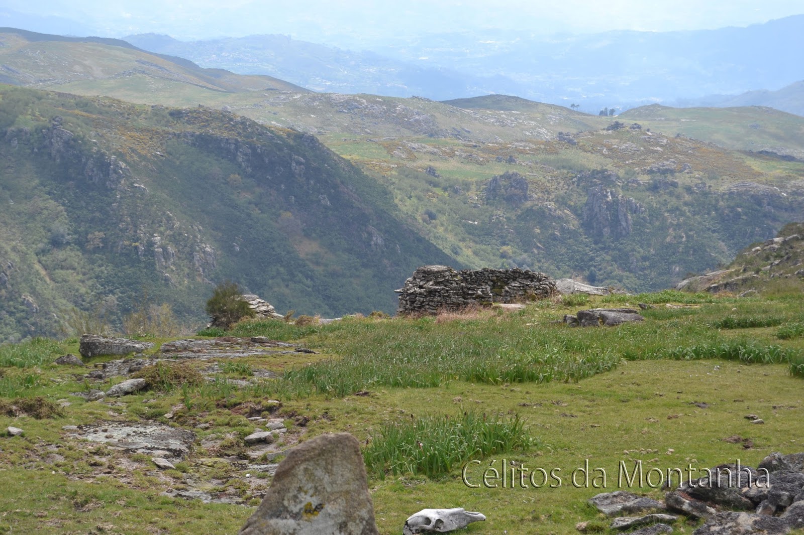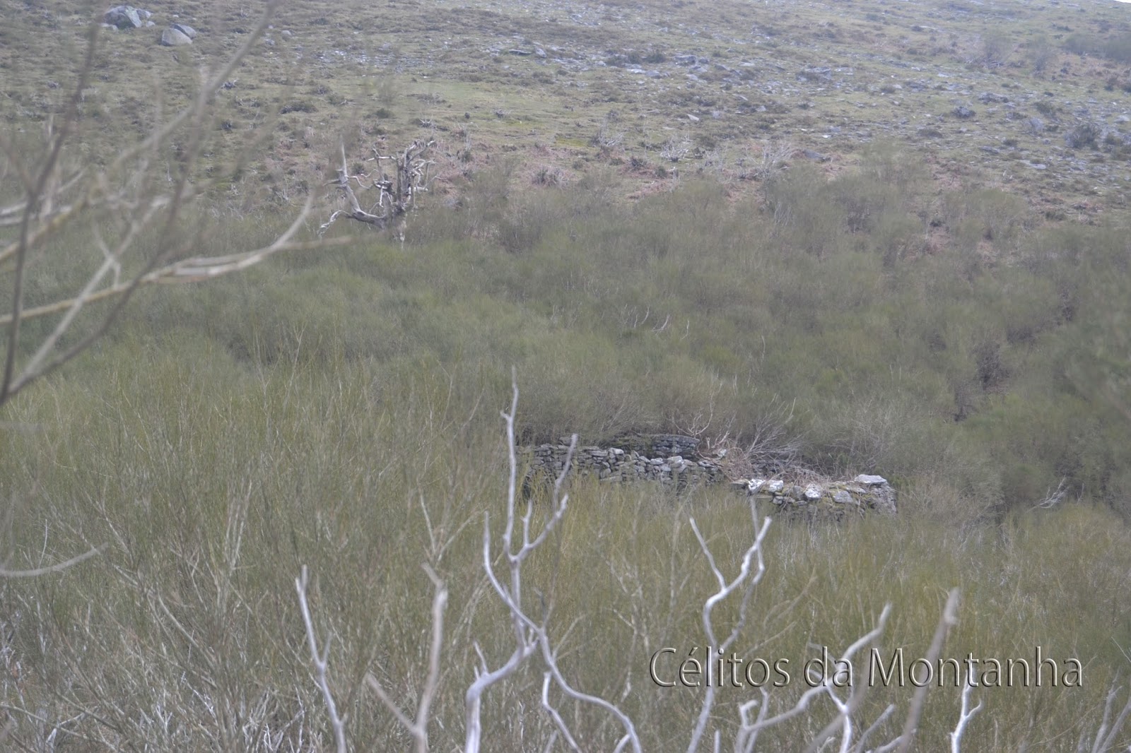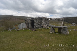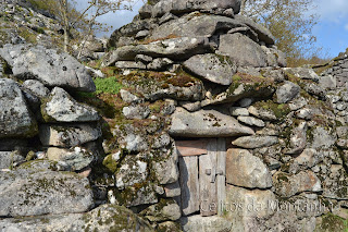 Almoço tratado e algumas fotos depois continuamos desta vez em direção à Branda do Arieiro e sua Cabana que já se encontrava com sua porta caída no chão ainda deu para colocar a porta de pé evitando assim a entrada de animais para seu interior, passando novamente pelo interior desta Branda e novamente montanha acima em direção ao Abrigo das Bragadinhas que desta vez já se encontrava muito mais limpo, pois da ultima vez que la passamos no final do trilho em conversa com um dos pastores de Padrão na Branda do Alhal  viemos a descobrir que na semana anterior tinha havido uma festa com os solteirões de Padrão e redondezas pela noite dentro em que todo o vazilhame utilizado lá teria ficado abandonado. Daqui seguimos para o Fojo de Maranho pelo trilho existente embora a meio na Chã da Cruz tivessemos de procurar bem o trilho pois as giestas tinham tomado conta do lugar mas o caminho existia e estava lá e nós encontramo-lo pois já o tinhamos feito dois anos antes, continuamos até ao Alto da Bragadela e daqui até um dos muros convergentes do respectivo Fojo (Maranho) onde descemos até ao fosso contornando e apreciando  seu impecavel estado de conservação com aspecto de ter sido reparado à muito pouco tempo. Continuamos contornando Bragadela até ao outro Fojo o da Colmadela que infelizmente se encontra em parte destruido e tomado pelas giestas e pelo mato. A Partir daqui foi continuar pelas Brandas de Porto Cavado, Cerradinha, Carvalhal e Rodrigo sempre com as maravilhosas paisagens do Ramiscal como companhia até Lordelo onde passamos um pequeno serão escutando as historias de vida da Srª Maria com os seus setenta e sete anos desde o seu tempo de jovem, a vida no campo na altura, o trabalho do marido pastor e agricultor, os dias passados na Branda do Real, a preocupação nos dias de neve em que o marido ficava retido sem alimentos e sem poder regressar à aldeia, memorias de uma vida dura mas contados com um brilhozinho nos olhos que nos fazem sonhar e regressar no passado e felizes por termos a honra de conhecer e poder escutar esta gente maravilhosa que tanto bem nos faz.