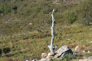 Depois de no feriado passado termos estado em Pitões das Junías, decidimos ir procurar a Cabana de Ceparros nos Montes de Vilarinho Era uma cabana que nos fascinava desde que tivemos conhecimento dela através do Livro do Professor Manuel Antunes "VILARINHO DA FURNA, MEMÓRIAS DO PASSADO E DO FUTURO". Entramos em contacto com o Professor que muito gentilmente nos indicou que a tal Cabana ficaria proxima do Azevinheiro. Depois de varias tentativas para a localizar lá partimos para mais uma tentativa, pois não saberíamos o que iríamos encontrar pois não conhecíamos sequer uma unica foto dela. Sábado de manhã e lá estávamos nós em Portela do Homem e para não ser mais um trilho de apenas procura decidimos dar um pouco de magia ao mesmo, fomos então em direção ao Cabeço de Palheiros, subimos ao Posto de Vigia de Incendios e aprecíamos maravilhosa paisagem da Albufeira de Vilarinho, o Vale do Alto Homem, Cabeço do Cantarelo, Cruz de Touro, Pé de Cabril, Pé de Medela, Encosta do Sol, Peito de Gemessura, Azevinheiro entre outros tantos. A partir deste posto escolhemos nosso trilho até Porto de Calvos e aqui seguimos linha de fronteira por Espera Fria, Penedos Rubios até Cruz de Touro passando e visitando Cabana de Chão de Touros e seu Curral. Chegados a Cruz de Touro a paisagem é divinal, só lá estando se pode avaliar. Daqui descemos até Curral e Cabana do Lousinho, uma descida muito acentuada e sobre rocha lisa, passando a ribeira chegamos ao Curral e mais umas fotos deste maravilhoso lugar, aqui avistamos umas mariolas em direção a Ruivas e decidimos segui-las contornando Alto das Eiras e seguindo trilho em direção ao Azevinheiro. Aqui chegados foi só procurar e lá encontramos a "nossa" Cabana envolta em muito mato e muitas giestas. Foi uma alegria e um prazer enorme e um sentimento de vitoria pois após varias tentativas lá estávamos a seu lado e agora era arregassar mangas e proceder a sua limpeza exterior e interior e que bem ela ficou. As fotos da praxe e lá continuamos pois não conhecíamos trilho embora soubessemos onde estávamos e que do outro lado da Corga já tínhamos aberto trilho até ao ribeiro mas faltava do nosso lado e com a ajuda da foice lá conseguimos encontrar o outro lado aberto por nós noutra altura. Aqui antes de passar o ribeiro encontramos os nossos amigos "Os Cinco Naturezas" do outro lado e lá esperaram por nós pois a vista sobre a passagem da ribeira não parecia facil mas ao fim depois de limpa até foi. Juntamo-nos ao nossos amigos e terminamos trilho juntos em Portela do Homem dando ainda tempo para umas fotos com uma Cobra Lisa Austriaca totalmente inofensiva.