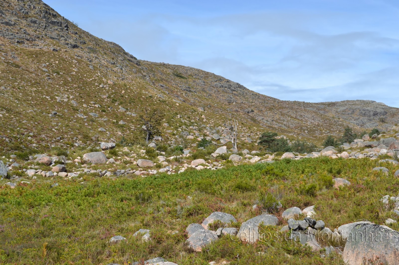 Depois de na semana anterior termos visitado a Biduiça, ficamos com a imagem gravada de Cornos de Candelas e seu vale, o que originou a nova caminhada por estas bandas. Para ser diferente optamos por iniciar trilho junto ao aqueduto na Abelheira onde deixamos viatura. Mochilas preparadas lá iniciámos subida pelo trilho paralelo ao Ribeiro da Abelheira até Entre Caminhos, uma subida facil e com trilho limpo. Chegados a Entre Caminhos a paisagem muda totalmente de uma paisagem agreste para uma Ampla cheia de cor e vida. Daqui seguimos pelo mais fácil o trilho de Pé Posto até ao Prado e Cabana da Biduiça onde encontramos os nossos queridos amigos : Luís Sá, Paulo Ataíde e Rui Leite mais Conhecidos pelos Cinco "Naturezas" (claro faltam dois mas não estavam presentes), Depois de algum tempo a por a treta em dia lá continuámos uns para cada lado nós para os "Cornos" e eles para o Compadre. Seguimos em linha recta em direção ao Corgo das Lamas do Compadre atravessamos em direção aos Currais de Formalinho de Baixo visitamos Forno alagado, continuamos até Formalinho de Cima onde viramos à direita pelo trilho existente, até ficarmos paralelos com com a vertente norte dos Cornos de Candela e seguimos umas tímidas e antigas Mariolas até um dos Picos existentes. Escolhemos o Pico lado Norte para atingir seu Cume e éramos para subir também ao Pico lado Sul mas como a paisagem era divinal tanto a Oeste como a Este decidimos ficar pelo primeiro e deixar o outro para uma próxima incursão a este maravilhoso lugar mas iniciando trilho em outeiro.