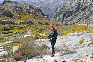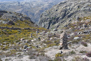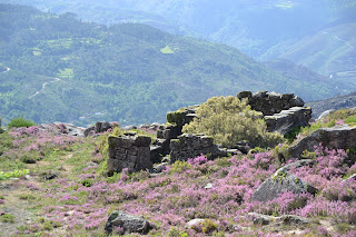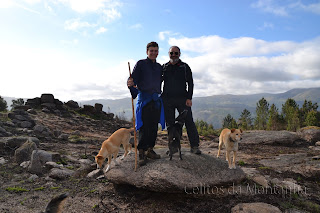 ( não temos nada contra quem quer conhecer nossas Montanhas, mas por favor façam-no de modo seguro assim é muito perigoso, pois não faziam a minima ideia por onde andaram) encontramos ainda um grupo de jovens que queriam ir a Porto da Lage mas de bicicleta onde apenas fixamos o nome João Almeida de Braga, conversamos um pouco e continuamos nosso trilho até Casa do Padre Julio passando e visitando Curral e Forno do Bitcho apreciando os Currais do Jumpereira, da Ponte e do Costa e depois o Curral do Carreira onde fletimos à esquerda até Mina do Borrageiros, onde fomos visitar o Altar de Sta Barbara Padroeira dos mineiros, uma volta pelas ruinas tentando imaginar como seria a vida num local tão agreste. Daqui como tempo passava decidimos seguir por Alcantara e visitar seu fojo, continuamos até Curral de Palma e descemos por Corga de Ruivós até Curral de Ruivós descendo até encontrar Rio Escalheiro onde fletimos à esquerda em direção a Pereira para descer até Pincães. Um Trilho cheio de cor e historia e ainda a companhia do Jovem David e da minha sempre companheira de todos os Trilhos a minha Célita da Montanha.